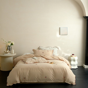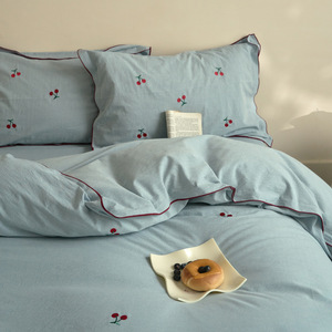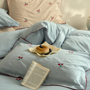 博主风韩式纯棉水洗棉樱桃刺绣密拷边四件套全棉床上用品床单床笠