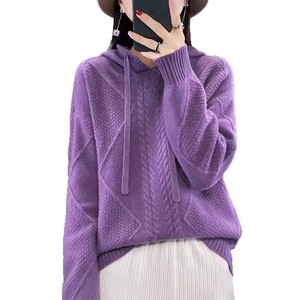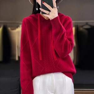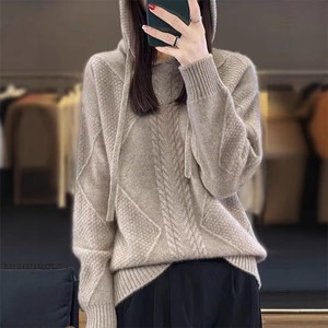 复古菱形扭花针织衫连帽女士长袖宽松休闲通勤秋冬加厚毛衣女外穿