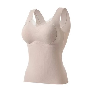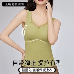 秋冬防寒保暖背心女带胸垫一体内衣蚕丝贴片护肚无痕修身内搭打底