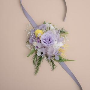 淡紫永生花玫瑰真花新郎新娘婚礼胸花伴郎伴娘手腕花婚礼优雅配饰