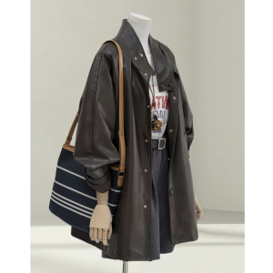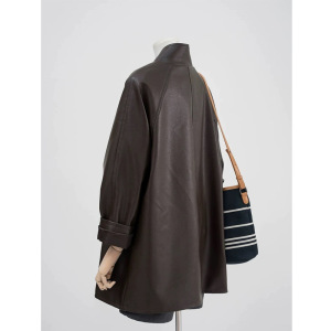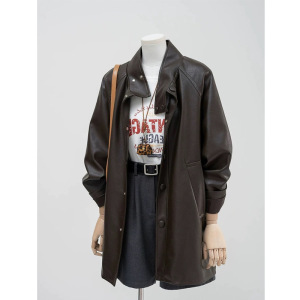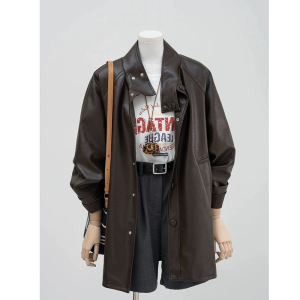 美式复古棕色皮衣外套女2025春秋季新款高JI感炸街宽松中长款夹克