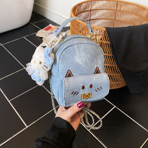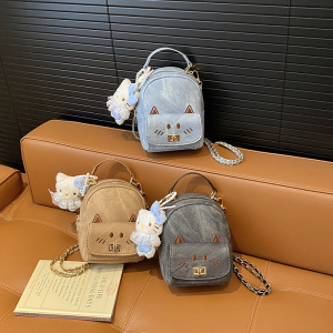 儿童包秋冬新款可爱猫咪迷你双肩包卡通少女学院风多用包链条背包