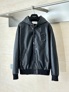 天花板品质25S潮牌新款CL风格大C压花皮革连帽拉链夹克外套帅气潮