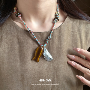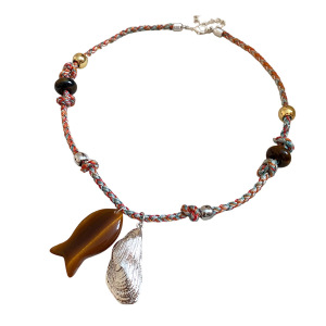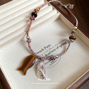彩绳树脂小鱼吊坠项链复古精致百搭锁骨链时尚choker高级感项饰女