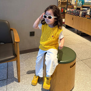 女童毛衣秋2025新款韩系男女童潮流穿搭刺绣针织马甲宝宝无袖上衣