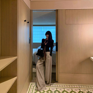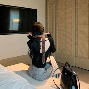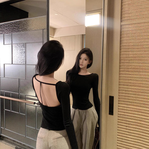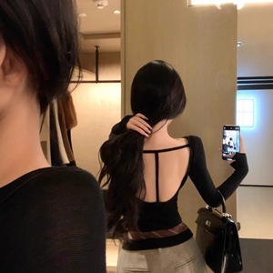 JAYKY YANG零感松弛黑色羊毛露背长袖打底衫修身百搭针织上衣
