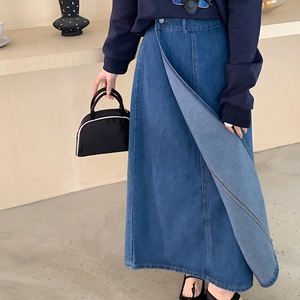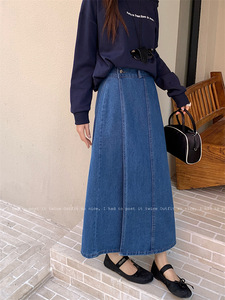 实拍实价 不规则牛仔半身裙春秋复古高腰遮胯a字包臀一步长裙子