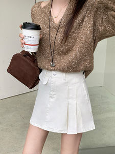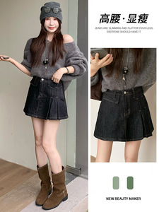 复古高腰百搭A字短裙女春秋季新款内衬防走光包臀显瘦半身裙子