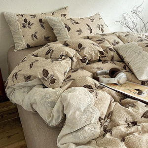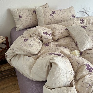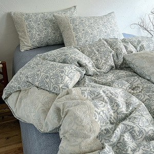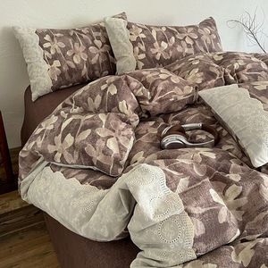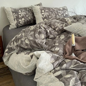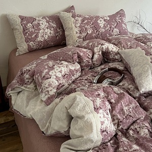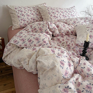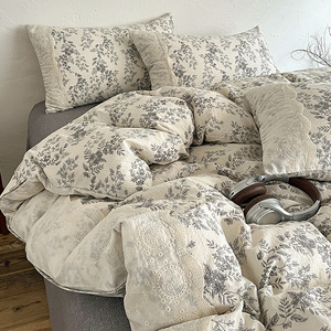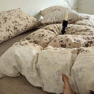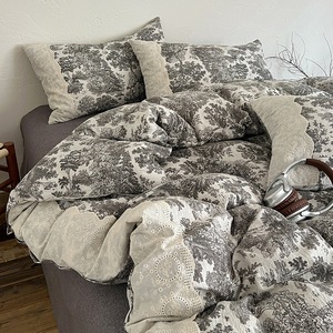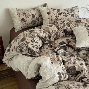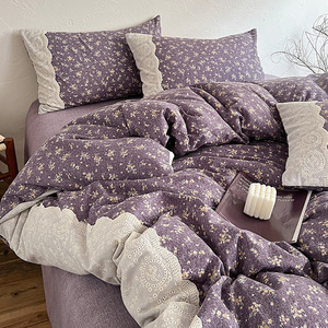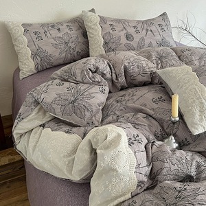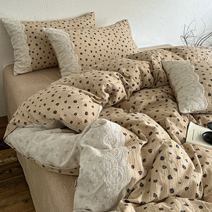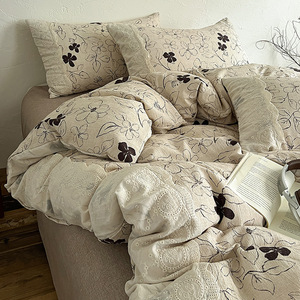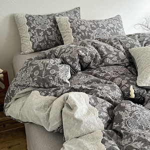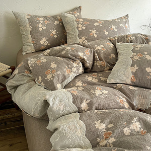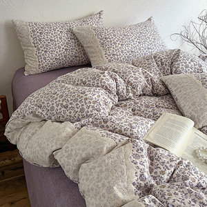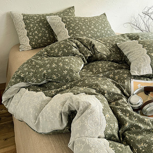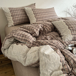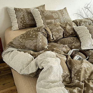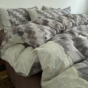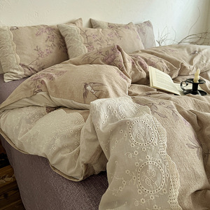 A类纯棉高克重四件套亚麻复古全棉花边侘寂风原麻床单款床品套件