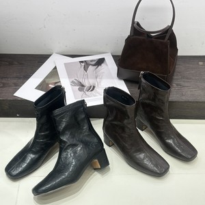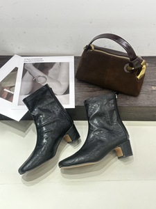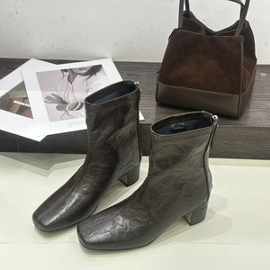 法式复古瘦瘦靴中跟粗跟短靴女25秋冬新款后拉链时装靴潮女靴滨莉
