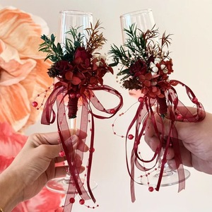 订婚新娘高脚香槟杯花花艺装饰新人结婚敬酒杯敬茶杯仪式感装饰花