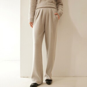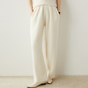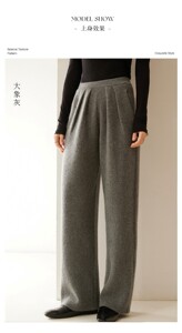 随性褶皱裤原创设计600g松紧腰褶皱山羊绒针织四平裤垂坠感