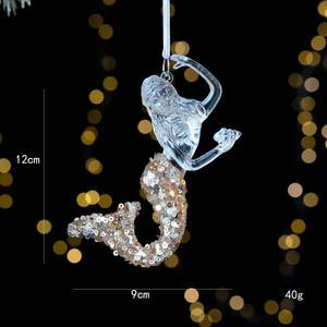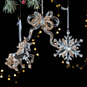 跨境新品圣诞节装饰品亮片亚克力透明挂件雪花铃铛吊饰圣诞树挂件