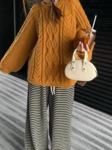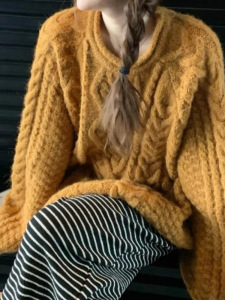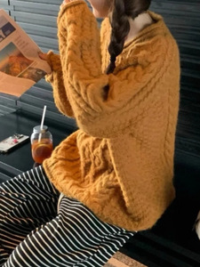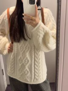 im向 慵懒感立体麻花粗线绞花毛衣女秋冬卷边设计厚毛衫