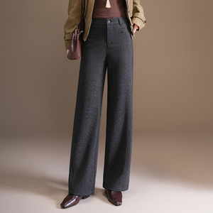 羊毛呢宽松显瘦高腰气质阔腿裤女裤2025冬款时尚百搭休闲直筒裤