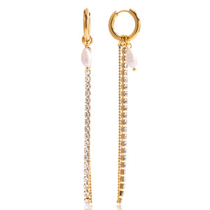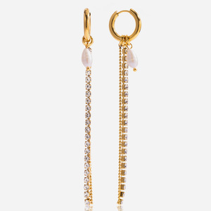 静俏雅致优雅风18K 金不锈钢水钻淡水珍珠流苏耳环耳饰女跨境饰品