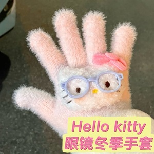 可爱眼镜HelloKitty手套kt猫保暖少女心冬季防寒防冻骑车户外学生