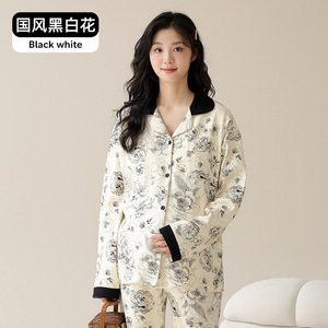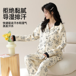 婧麒月子服十月份产后纯棉带胸垫哺乳睡衣怀孕期孕妇喂奶家居服女