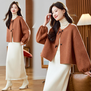 2025秋冬新款女装国风新中式百搭毛呢外套女羊毛双面呢大衣ZH2637