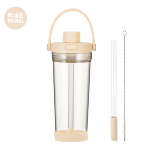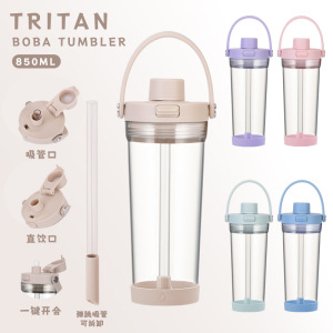 2025新款Tritan吸管杯大孔可吸珍珠奶茶杯便携提手弹跳吸管水杯