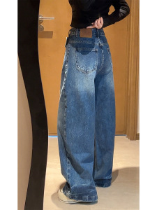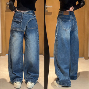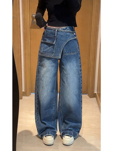 欧洲站2025春秋季新款欧货时尚高腰显瘦百搭直筒屁帘阔腿牛仔裤女