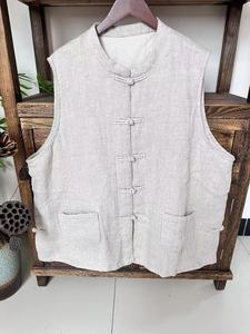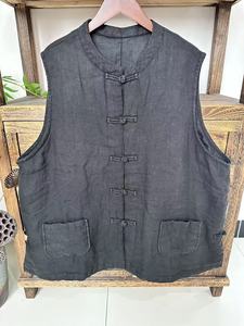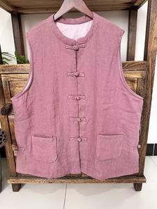 2025冬中式复古盘扣砂洗亚麻立领加棉马甲百搭保暖无袖上衣女8209