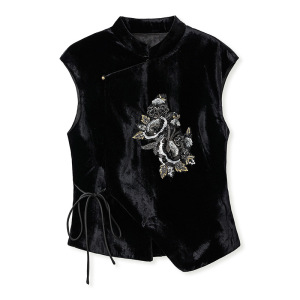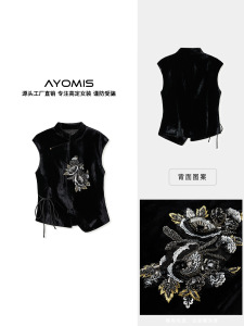 新中式高端刺绣亮片丝绒桑蚕丝马甲女早秋新款立领无袖背心 N8070