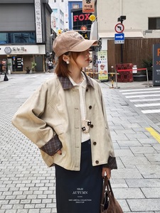 「玖柒工作间」"帕斯托信箱"巴恩风格纹撞色领秋季工装夹克短外套