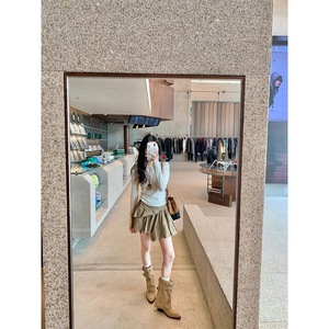 牛皮版~美式辣妹皮带扣裤管靴中筒筒靴女靴子小众设计短靴西部靴