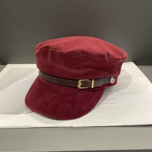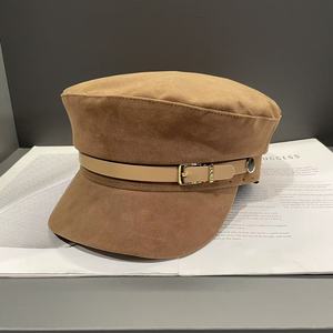 英伦风皮带扣平顶马术帽女时尚文艺复古百搭大头围显脸小画家帽子
