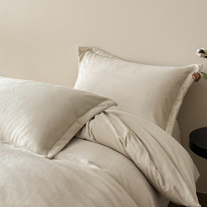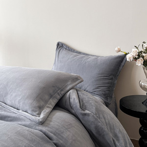 冬季巨厚巨暖~A类300G醇厚速暖牛奶绒四件套纯色极简法兰绒被套笠