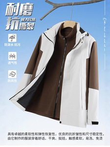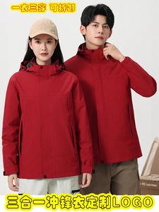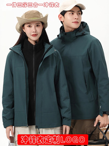 可拆卸三合一冲锋衣定制工作服外套加绒加厚户外防雨工装印字logo