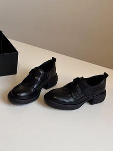 软皮版~英伦风厚底魔术贴乐福鞋女一脚蹬软皮舒适粗跟静音小皮鞋
