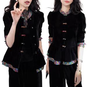 漂亮小衫国风盘扣上衣气质显瘦女装2025秋季新款时尚通勤丝绒外套