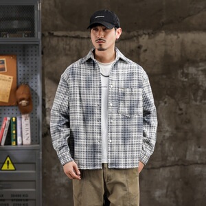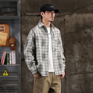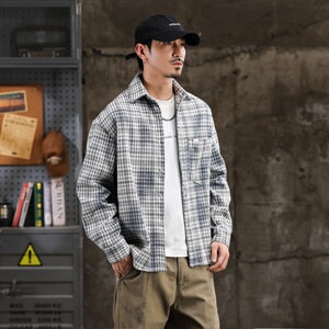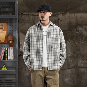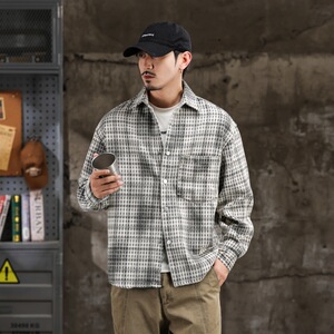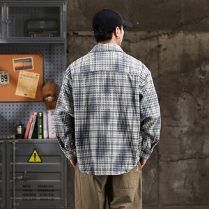 美式复古色织条纹长袖衬衫外套男宽松重磅小众夹克衬衣户外工装潮