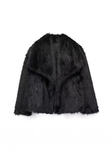 跨境爆款皮草外套女秋冬人造环保毛毛大翻领时尚保暖百搭上衣
