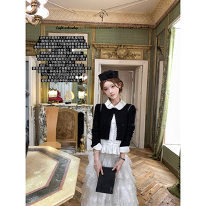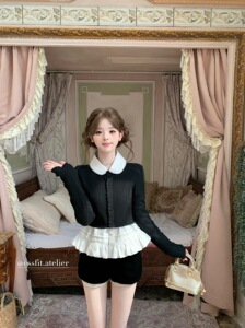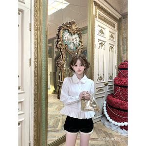 迟伞伞25/fw 绢羽笔尖 小卓花边拼纱下摆刺绣领白衬衫上衣