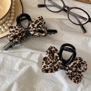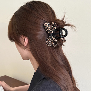 秋冬复古豹纹蝴蝶结抓夹女高级感2025新款后脑勺发夹鲨鱼夹子头饰