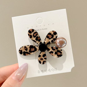 豹纹珍珠花朵发夹女复古气质碎发刘海夹2025新款侧边夹头饰鸭嘴夹