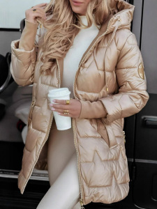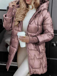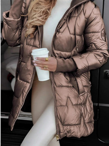 跨境欧美2025秋冬新款女装亚马逊时尚连帽长袖口袋纯色中长款棉服