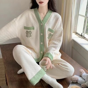 空气棉春秋款睡衣女简约休闲加厚薄款夹棉套装纯棉冬家居服可外穿