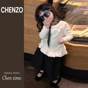 儿童套装早秋2025新款甜美女童荷叶边圆领长袖上衣女孩休闲半身裙