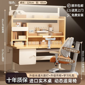 儿童学习桌小学生书桌可升降桌子实木家用课桌椅带护眼灯学习椅套