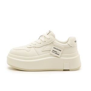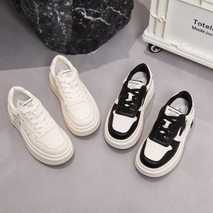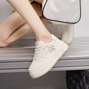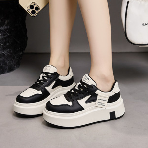 真皮厚底小白鞋女2025新款系带熊猫女鞋轻便透气百搭运动休闲板鞋