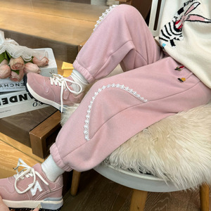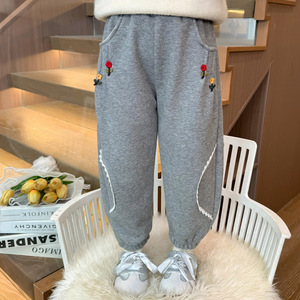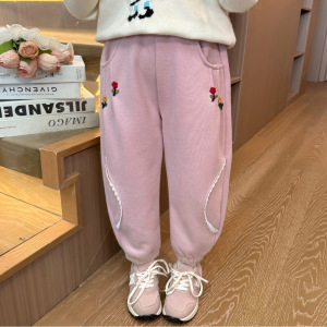 女童休闲加绒裤2025新款秋冬女宝宝一体绒加厚卫裤儿童装运动裤子