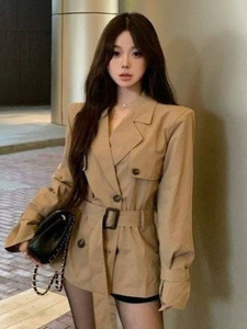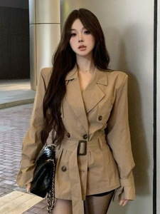 法式高级感风衣外套女装秋季新款卡其色英伦风小个子收腰短款大衣