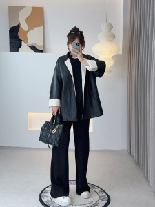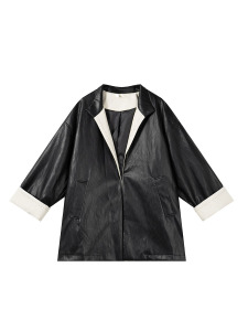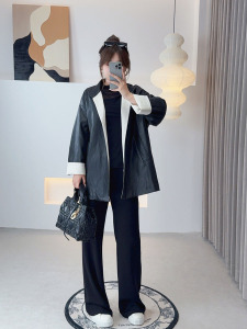 双天2025秋季新款大码女装外套胖妹妹简约宽松PU外套女秋9116