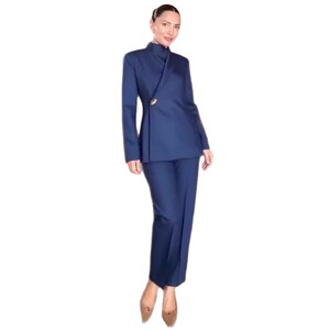 2025秋季新款欧美亚马逊跨境外贸女装气质显瘦蓝色直筒裤时尚套装