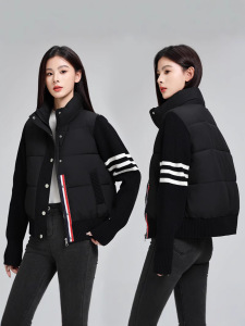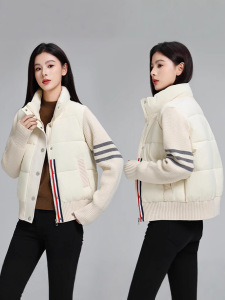 针织设计冬季棉衣拼接羽绒棉服短款2025新款加厚立领保暖外套