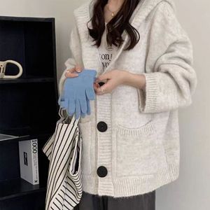 韩系慵懒风连帽外搭毛衣外套女2025秋冬新款宽松软糯羊驼针织开衫